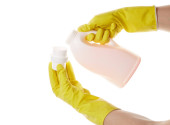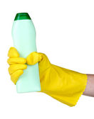 Butelka z tworzywa sztucznego do płynnego detergentu piorącego lub środka czyszczącego, wybielacza lub zmiękczacza tkanin. Detergenty do domu. Środki czyszczące.