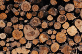 stosy drzew w fabryce. W magazynie jest dużo tarcicy. przemysł wytwórczy zasobów naturalnych. wylesianie surowców
