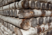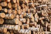 stosy drzew w fabryce. W magazynie jest dużo tarcicy. przemysł wytwórczy zasobów naturalnych. wylesianie surowców