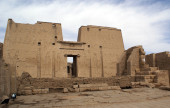 fragment muru z hieroglifów i freski w egipskiej świątyni