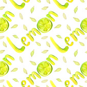 Cytryny i rozmaryn na białym tle. Płynny wzór akwareli z plastrami cytryny i limonki. Odcisk cytrusowy do kuchni.