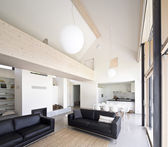 Zdjęcie "Widok z przodu biała nowoczesna kuchnia z wyspą, stalowym kapturem i piekarnikiem. Małe okno z widokiem na przyrodę. Nikogo w środku.. " może być wykorzystywane do celów osobistych i komercyjnych zgodnie z warunkami zakupionej licencji Royalty-free. Obraz jest dostępny do pobrania w jakości wysokiej rozdzielczości do 5760x3840.