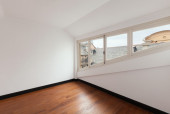Zdjęcie "Widok z przodu pusty pokój z dużym oknem na przyrodę i błękitne niebo. Nikogo w środku." może być wykorzystywane do celów osobistych i komercyjnych zgodnie z warunkami zakupionej licencji Royalty-free. Obraz jest dostępny do pobrania w jakości wysokiej rozdzielczości do 5760x3840.