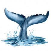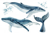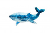wieloryb na odizolowanym białym tle, ilustracja akwarela