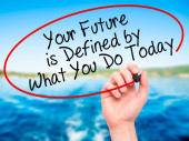 Znak tekstowy pokazujący Twoją przyszłość jest określony przez to, co robisz dzisiaj