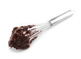 Czekolada rozłożone i nóż izolowany na białym tle. Pyszny projekt żywności
