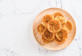 Zdjęcie "Pyszne francuskie Choux Craquelin ciasta wypełnione śmietaną" może być wykorzystywane do celów osobistych i komercyjnych zgodnie z warunkami zakupionej licencji Royalty-free. Obraz jest dostępny do pobrania w jakości wysokiej rozdzielczości do 5760x3840.
