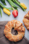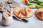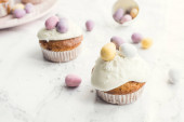 Zdjęcie "Pyszne francuskie Choux Craquelin ciasta wypełnione śmietaną" może być wykorzystywane do celów osobistych i komercyjnych zgodnie z warunkami zakupionej licencji Royalty-free. Obraz jest dostępny do pobrania w jakości wysokiej rozdzielczości do 5760x3840.