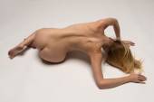 piękne nagie brunetki lekkoatletycznego na białym tle
