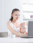 niesamowite matka i dziecko dziewczyna patrząc na laptopa