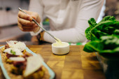 Zdjęcie "Szef kuchni zdobi talerz sera pęsetą" może być wykorzystywane do celów osobistych i komercyjnych zgodnie z warunkami zakupionej licencji Royalty-free. Obraz jest dostępny do pobrania w jakości wysokiej rozdzielczości do 5760x3840.