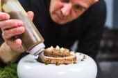Zdjęcie "szef kuchni zdobi talerz foie gras sosem" może być wykorzystywane do celów osobistych i komercyjnych zgodnie z warunkami zakupionej licencji Royalty-free. Obraz jest dostępny do pobrania w jakości wysokiej rozdzielczości do 5760x3840.