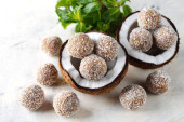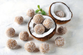 Zdjęcie "Wegańskie cukierki kokosowe na brązowym tle" może być wykorzystywane do celów osobistych i komercyjnych zgodnie z warunkami zakupionej licencji Royalty-free. Obraz jest dostępny do pobrania w jakości wysokiej rozdzielczości do 5760x3840.