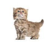 Kociak brytyjski longhair, stojący, odizolowany na białym