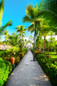 luksusowy hotel w tropical resort na brzeg oceanu z palmami
