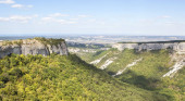 Rano widok z góry Mangup kapusta - zabytkowej twierdzy i osada starożytna jaskinia na Krymie (Ukraina)