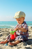 szczęśliwy dziecko bawiące się nad morzem na zewnątrz