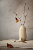 Kamienne podium produktów i suchych liści Philodendron xanadu roślina tropikalny dom w pięknym białym ceramicznym wazonie na marmurowym stole i cementowym tle ściany