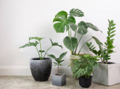 Zdjęcie "Różne rośliny domowe w nowoczesnym stylowym pojemniku na białym drewnianym stole i ścianie w białym pokoju, naturalne powietrze ir oczyścić z Philodendron selloum, Guma roślin, Ficus Lyrata" może być wykorzystywane do celów osobistych i komercyjnych zgodnie z warunkami zakupionej licencji Royalty-free. Obraz jest dostępny do pobrania w jakości wysokiej rozdzielczości do 5760x3840.