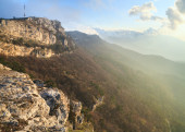 wieczór wiosna masyw górskiej (skała "sokolinuj vzljot" (Sokół latające w górę), w pobliżu sokolinoe wieś, Krym, Ukraina)