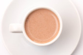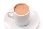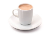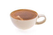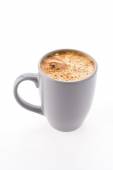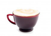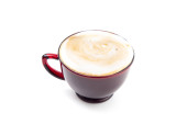 Kawa w czerwonym przezroczystym kubku na białym tle