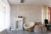 Zdjęcie "Dwa stoliki z miękkimi, wygodnymi, fioletowymi krzesłami dla odwiedzających jadalnię nowoczesnego centrum handlowego. Ludzie podziwiają piękny widok podczas posiłku.." może być wykorzystywane do celów osobistych i komercyjnych zgodnie z warunkami zakupionej licencji Royalty-free. Obraz jest dostępny do pobrania w jakości wysokiej rozdzielczości do 5760x3840.