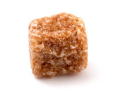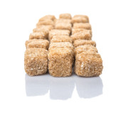 Brązowe kostki cukru na białym tle