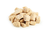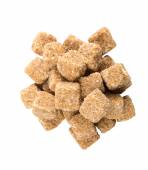 Brązowe kostki cukru na białym tle