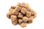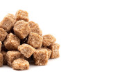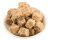 Brązowe kostki cukru na białym tle