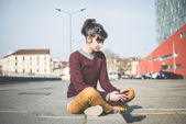 dziewczyna punk za pomocą tabletu