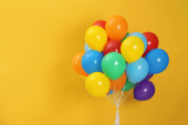 czysty krajobraz kompozycja wykonana z trzech balonów aquamarine, żółty i pomarańczowy na tle cyjanu