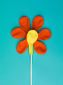 czyste ułożenie krajobrazu wykonane z trzech balonów aquamarine, żółty i pomarańczowy na ciemnym pomarańczowym tle