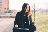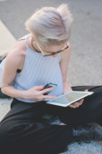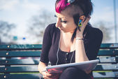 dziewczyna punk za pomocą tabletu