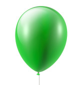 zielony balon z wstążką latający na izolowanym na białym tle