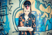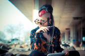 Zdjęcie "słuchania muzyki punkowej dziewczyny" może być wykorzystywane do celów osobistych i komercyjnych zgodnie z warunkami zakupionej licencji Royalty-free. Obraz jest dostępny do pobrania w jakości wysokiej rozdzielczości do 5760x3840.