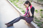 Zdjęcie "dziewczyna punk za pomocą tabletu" może być wykorzystywane do celów osobistych i komercyjnych zgodnie z warunkami zakupionej licencji Royalty-free. Obraz jest dostępny do pobrania w jakości wysokiej rozdzielczości do 5760x3840.