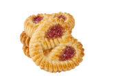 Dżem truskawkowy wypełnione Shortbread na białym tle