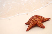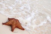 fala ocean i rozgwiazdy przy tropikalnej, piaszczystej plaży