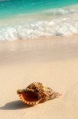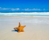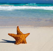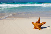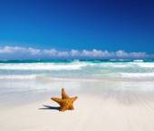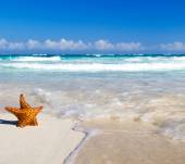 fala ocean i rozgwiazdy przy tropikalnej, piaszczystej plaży