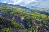 wiosna krymskich góry krajobraz z mangup kapusta - zabytkowej twierdzy i osada starożytna Jaskinia w Krym, Ukraina.