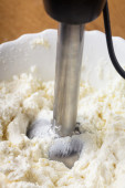 wanną lodów waniliowych z gałką na białym tle