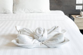wygodne łóżko z czystej szlafrok w ekskluzywny hotel