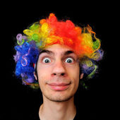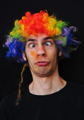głupi człowiek szalony perukę pajac w kolorach tęczy