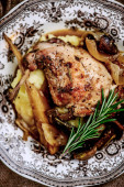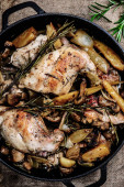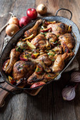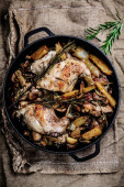 Gulasz z królika z grzybami.style rustic.selective focus
