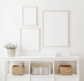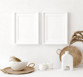 Mock up frame close up in home interior background, w stylu Boho, renderowanie 3d