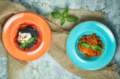 różne makaron widok z tarką do sera parmezan i liść bazylii