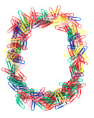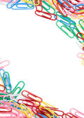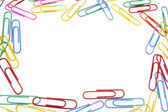 Blanc w ramce. wzdłuż krawędzi są kolorowe spinacze do papieru.