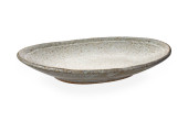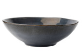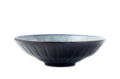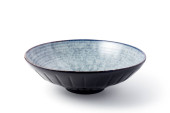 Ceramiczna miska z marmurową fakturą, Pusta miska z wzorem w paski, odizolowana na białym tle ze ścieżką wycinania, Widok z boku