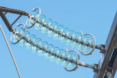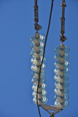 Nur-Sultan, Kazakhstan - 05.28.2015 : High-voltage power lines with insulators, stabilizers and transformers.