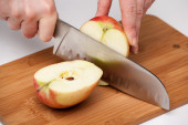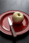 zielone jabłko na deskę do krojenia